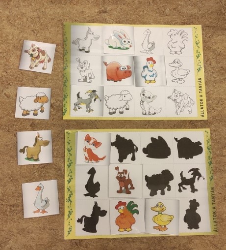 Csendjátékunk során házi állatokat párosítunk árnyképekkel.