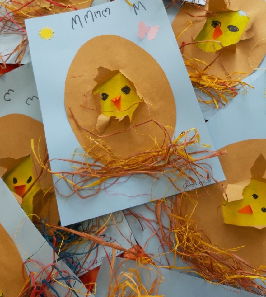 Tojásból kikelÅ‘ kiscsibét készítünk ragasztással.