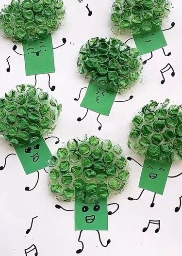 Brokkolit készítünk, melynek a törzsét ragasztással, rózsáit festéssel készítjük el.