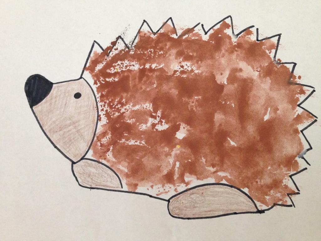 Előre rajzolt sünit barnára festünk szivacs segítségével.