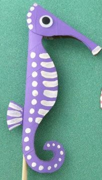 Csikóhalat készítünk előre kivágott papír elemeket ragasztásával. Ha szeretnénk spatulára ragasztva bábként is használhatjuk a vízi pacit.