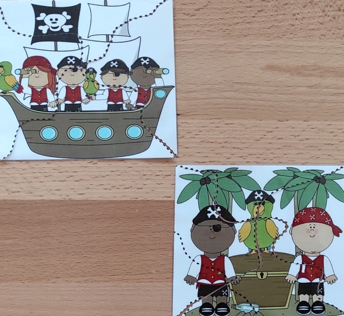 Csendjátékunk során kétfajta kalózos puzzle játékkal ismerkedhetnek a gyerekek, a különálló részek egy képpé való összeillesztésével ügyeskedhetnek a kicsik.