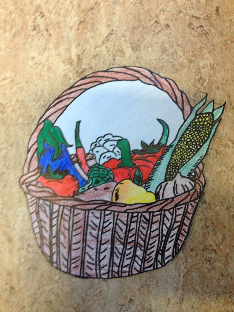 Külön kosárba gyűjtjük a gyümölcsöket (melyeket tízóraira szoktunk enni) és a zöldségeket (melyeket az uzsonnához fogyasztunk).